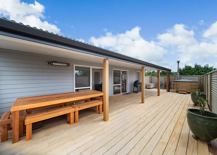 Going The Distance Villa, situada a 10 minutos en coche del Instituto de Artes Maorí de Nueva Zelanda, ofrece a sus huéspedes la posibilidad de relajarse en un jacuzzi.